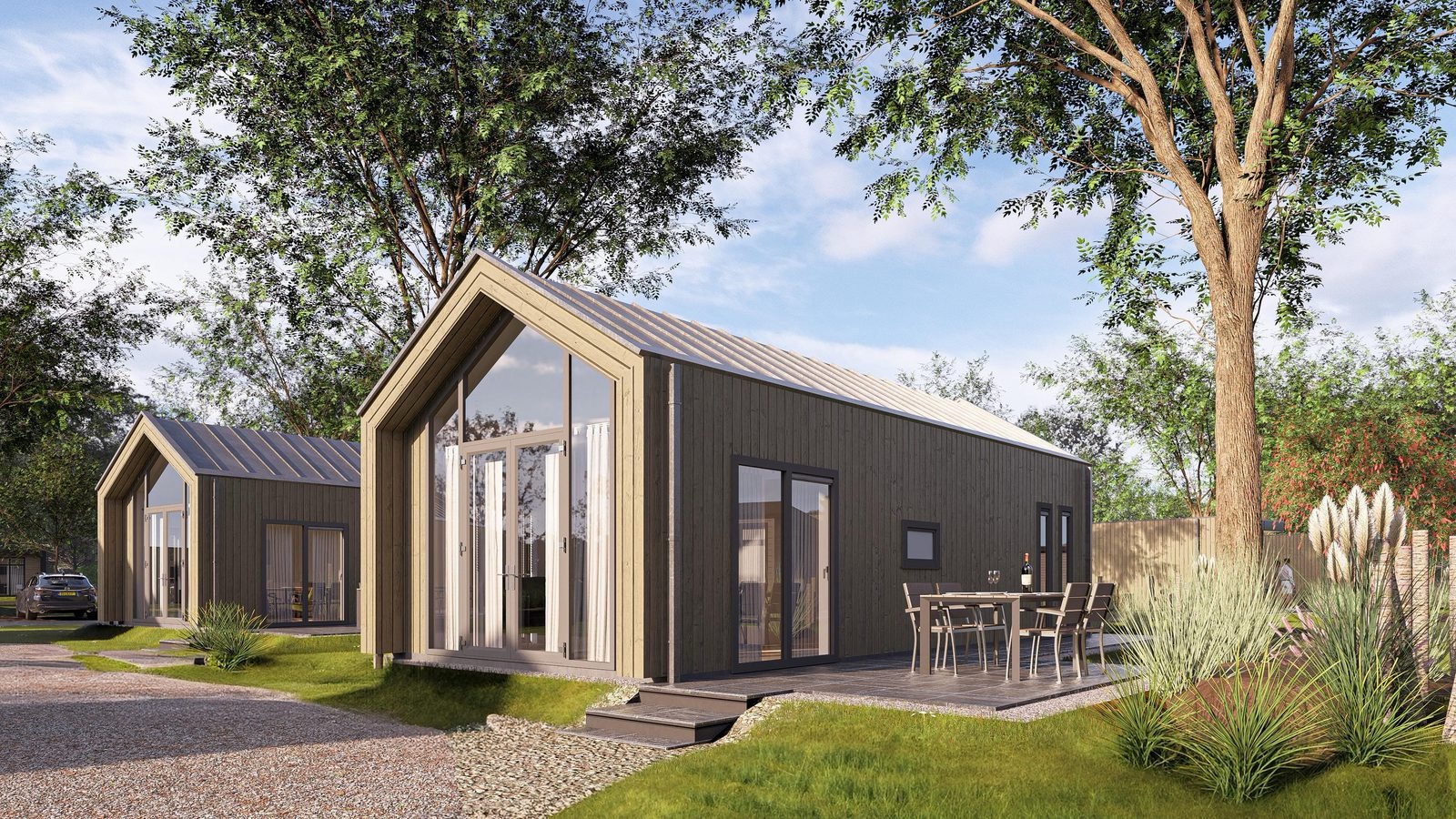 Het park biedt zowel koopkavels (vanaf € 40.000,–) als huurkavels. U kunt kiezen uit drie hoogwaardige interieurpakketten of het chalet volledig naar eigen inzicht inrichten. Daarnaast zijn er uitbreidingsmogelijkheden zoals een overkapping, sauna of hottub — voorzieningen die de verhuurwaarde verhogen en bijdragen aan een aantrekkelijk bezettingspercentage.
